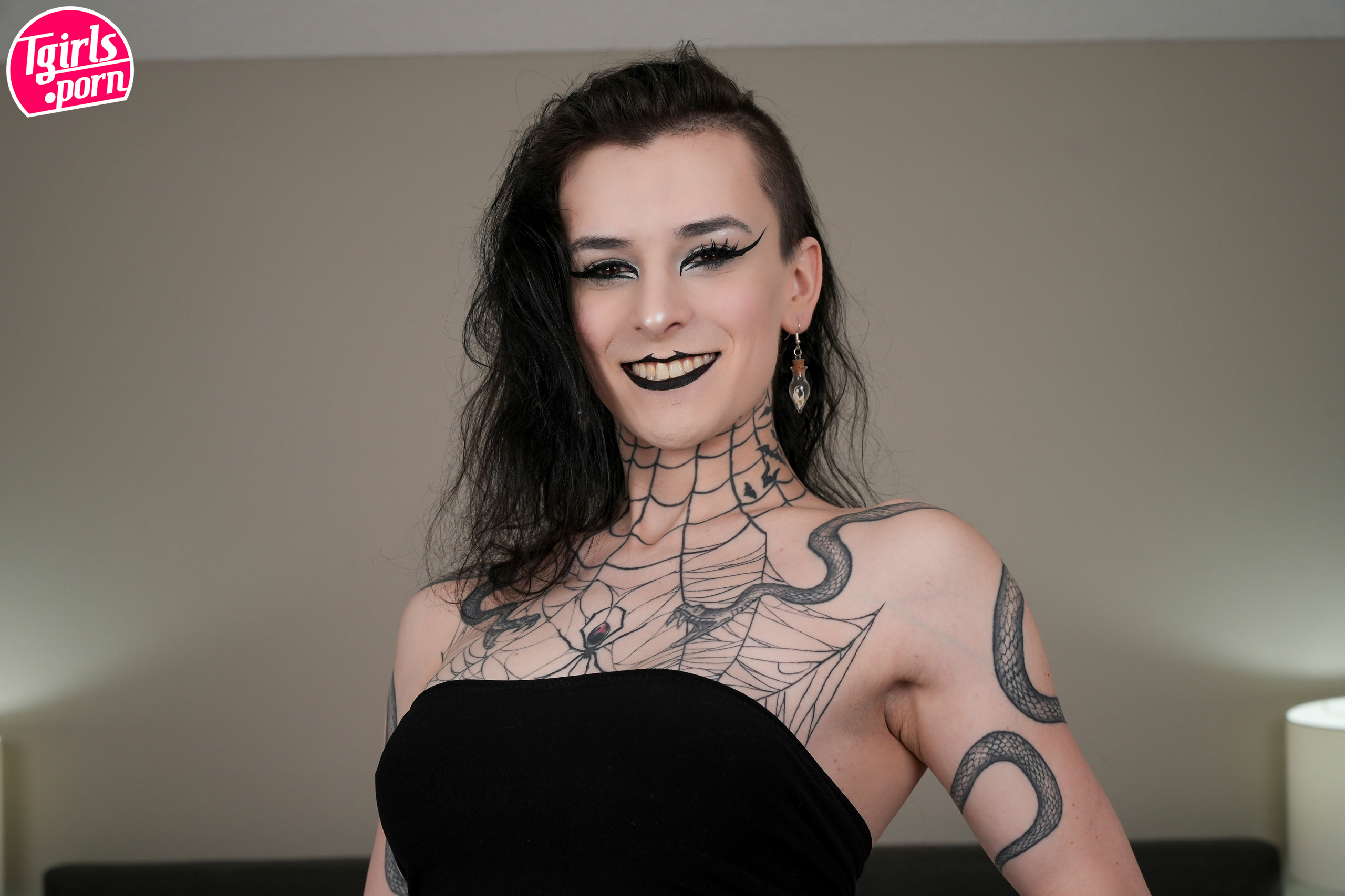 After a fun night at a goth-style party, Bobbi asked if Viviana wanted to come back to hers and hangout as she was looking for new buddies. Viviana was all up for it, and thought Bobbi was coming on to her, so looking for fun. Back at Bobbi's - as she's playing some tunes and fixing some drinks,... Read More in Members Area
